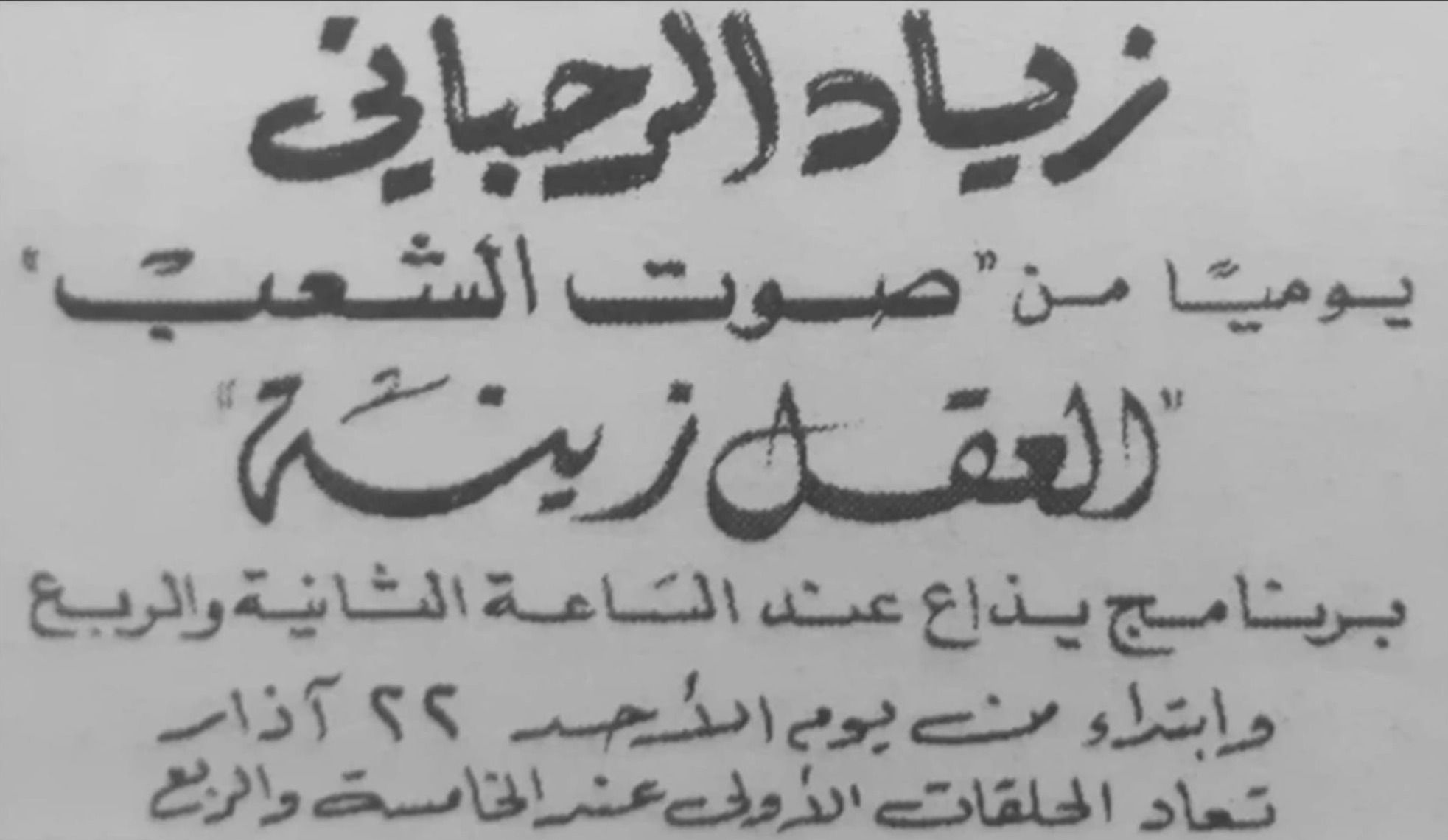صمّم زياد الهويّة الصوتيّة للإذاعة عبر تلحينه للجنغلز، أو الفواصل الموسيقية وجينيريك النشرات والمواجز والفلاشات الإخبارية، وحتّى بعض الإعلانات التجارية، أشهرها إعلان سيارة «لادا» السوفياتية. الأهمّ من كلّ ذلك، شهد هذا الشهر ولادة برنامج إذاعي فريد من نوعه بعنوان «العقل زينة».